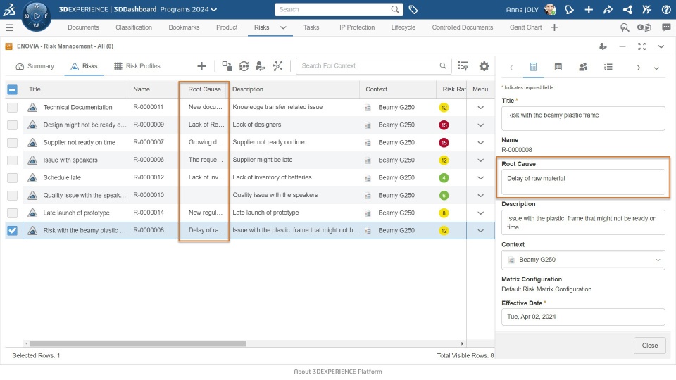 How A new attribute, ‘Root Cause’ is now available for Risk and Opportunity in the: •Creation dialog •Table View •Property Panel |