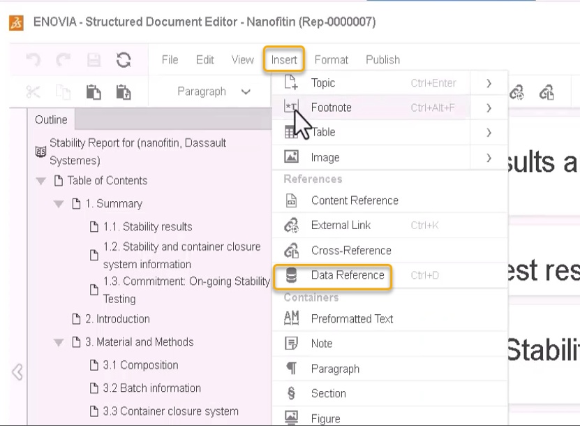 How - You can now use the Insert > Data Reference > 3DS Semantic Graph Index option to insert the data from the Data Perspective Studio.