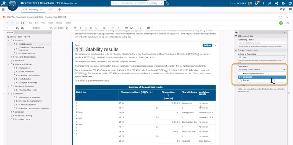 - To set orientation, you can select the required topic, and from Publishing Theme section, set Orientation to “Landscape” or “Portrait” as required.