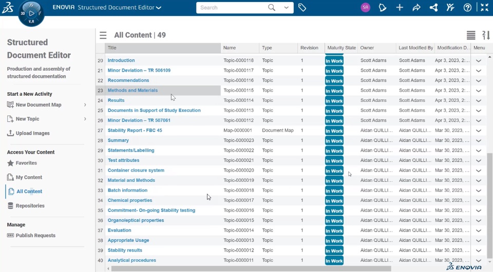 How This role contains the Structured Document Editor dashboard app that lets technical authors: - Create and access the repositories to store the content, document maps to organize the content, topics to document the content. - Collaborative and Concurrent development of technical documents through the web-based authoring experience. - Reuse content created by co-authors to save time and accelerate document production. - Easily create document map templates to drive standardization of format, layout and appearance. - Create advanced table design & management for flexible data representations. - Produce accurate reports (PDF) through automated document generation |
