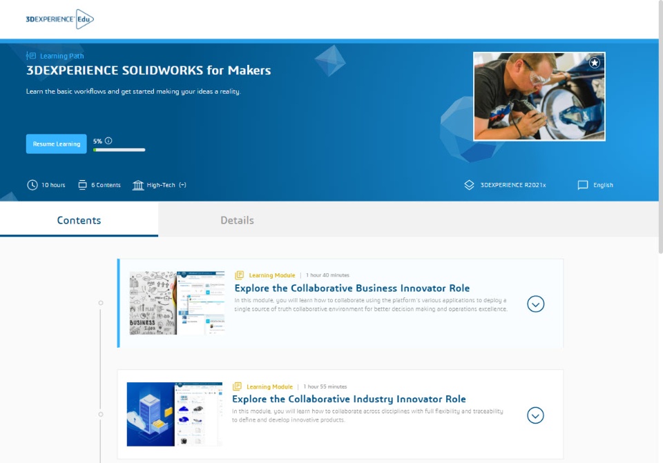 Users of 3DEXPERIENCE SOLIDWORKS for Makers can access free training content with their 3DEXPERIENCE ID. The learning path has content for the roles in the 3DEXPERIENCE SOLIDWORKS for Makers offer, including: