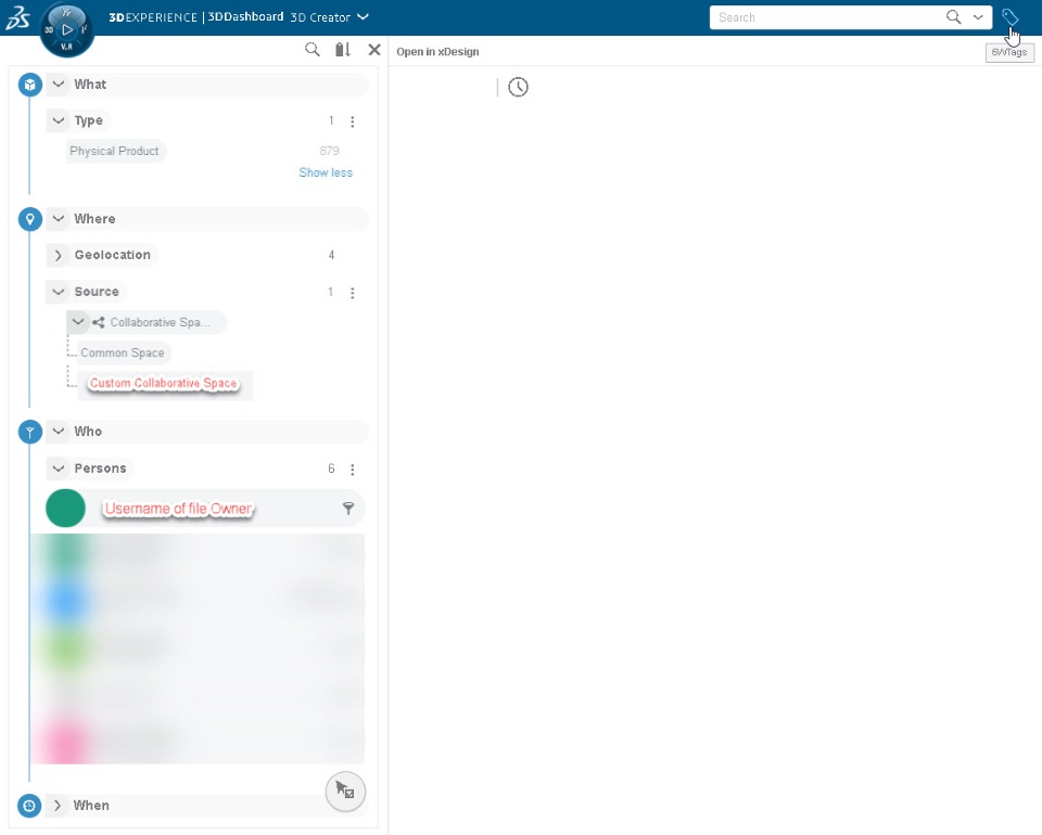 Here is the workflow video indicating how to switch from the standard 'Open' dialogue box to 'Open from 3DEXPERIENCE', finding your parts using the new 'Search' box and filtering them based on the '6W Tags'.