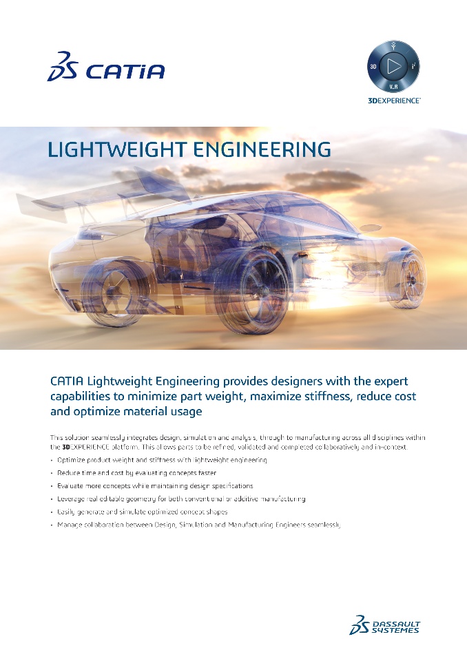 Weight reduction is one of the primary focuses during design phases as it is widely recognized that lightweight designs have benefits for multiple industries. For example, the automotive industry is under increasing pressure from regulators and customer demands to improve engine efficiency, enhance car safety, and reduce harmful emissions. A lighter airplane will use less fuel, cost less, and can be built in less time. Engineers can utilize 3DEXPERIENCE modelling and simulation solutions to quickly optimize a design for a given manufacturing process, or compare and achieve the most suitable manufacturing method whether that is additive manufacturing, forging, machining, or molding.