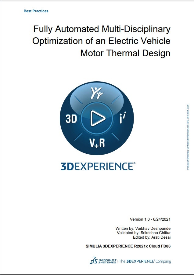 The optimization is conducted by building a Simulation Process in the SIMULIA Optimization Process Composer application. The Simulation Process executes an optimization based on sequential thermal-structural analysis. The thermal analysis is set up using the SIMULIA Fluid Scenario Creation application and simulates the heat transfer between the Coolant and Stator of an Electric Vehicle motor. The structural analysis is set up using the SIMULIA Mechanics Scenario Creation application and simulates the structural performance of the Coolant jacket design under the forces exerted by the fluid. The optimization optimizes the thermal and structural performance of the coolant jacket design. The Simulation Process created for the optimization is converted into a Simulation Template and deployed to the design engineers in the organization.