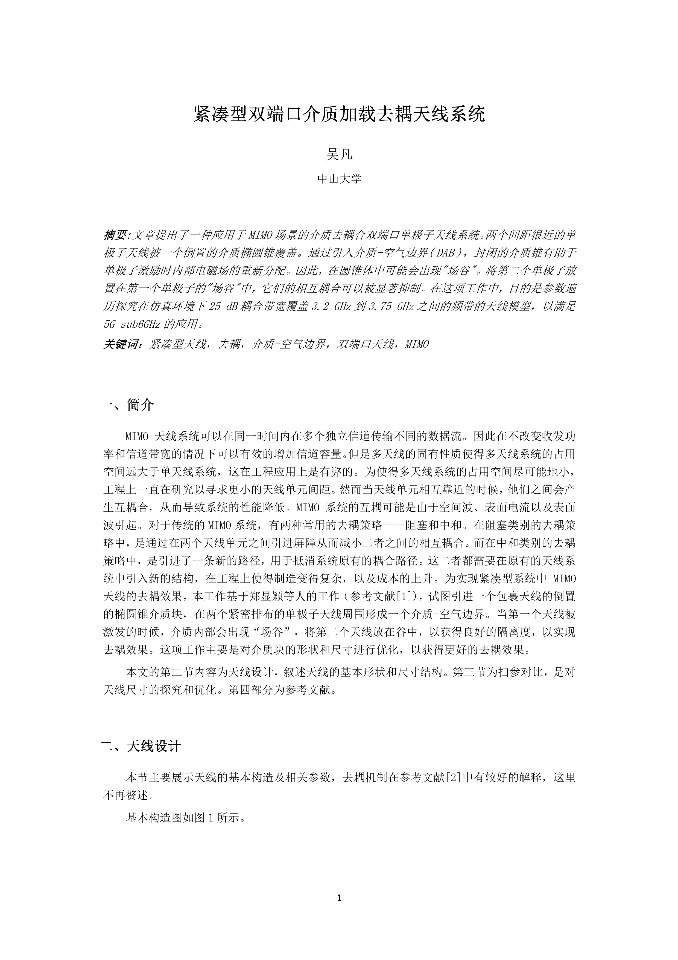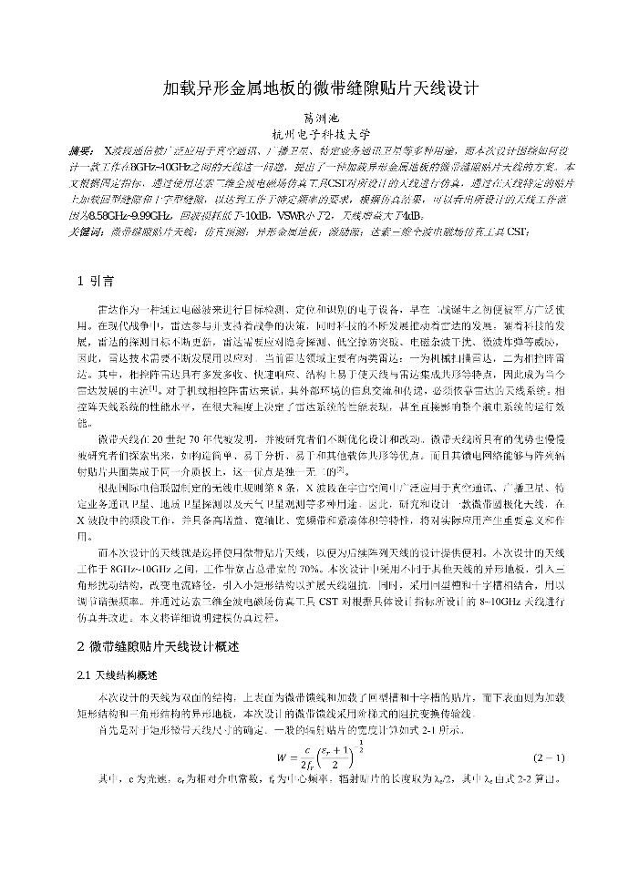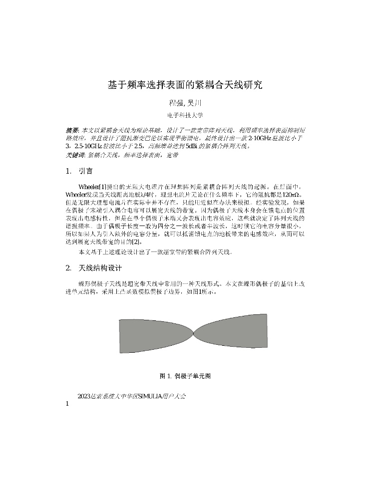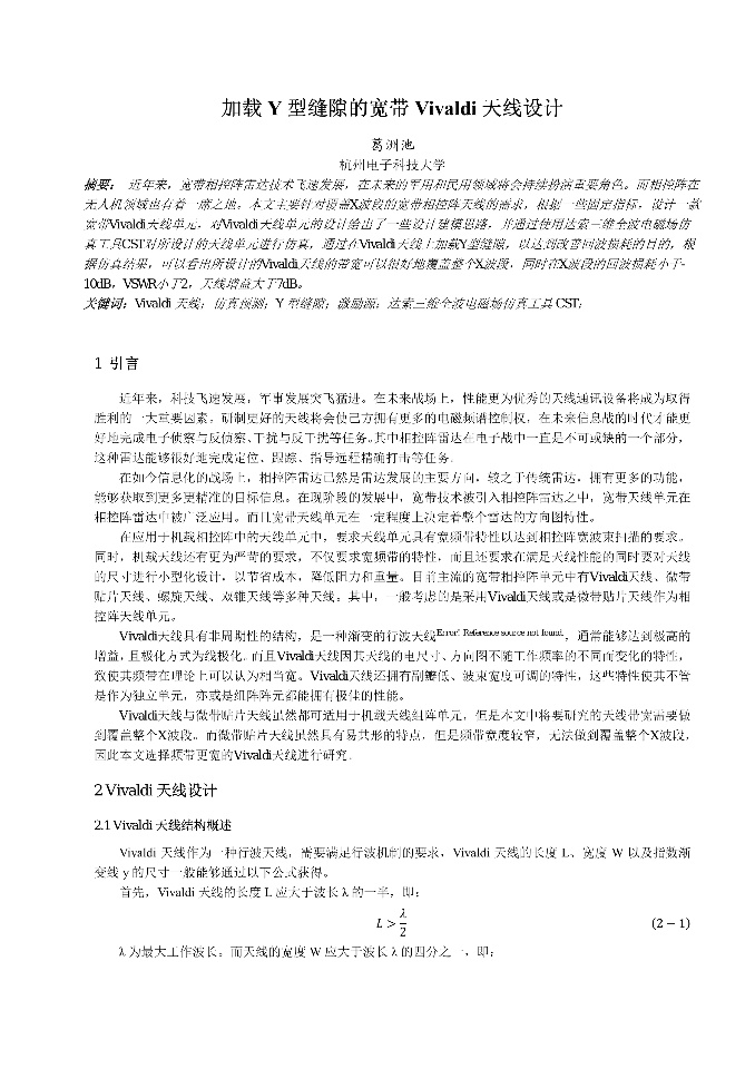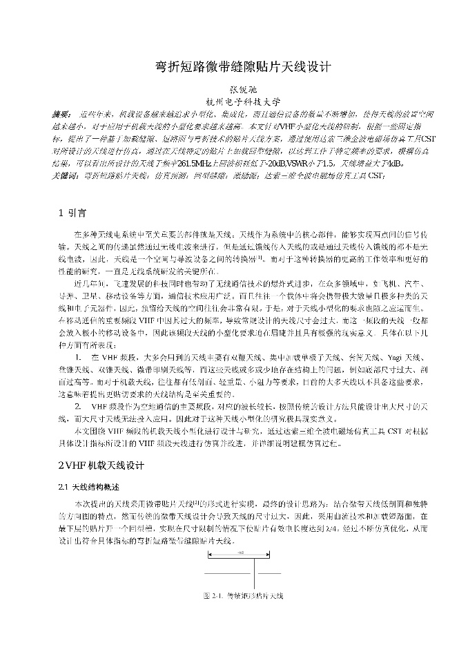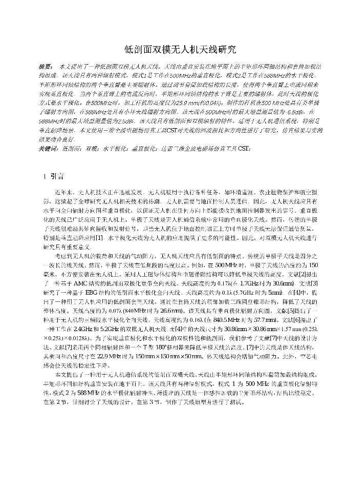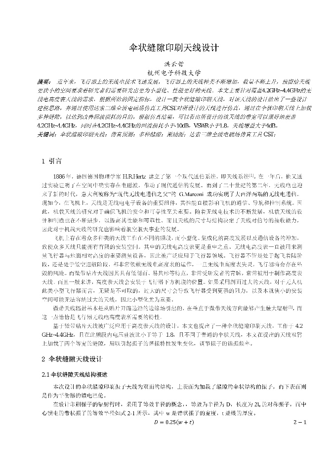 | 伞状缝隙印刷天线设计 | 低剖面双模无人机天线研究-张瑞 | 加载Pin二极管的可重构电桥仿真研究_黄晓天 | 加载Y型缝隙的Vivaldi天线设计 |