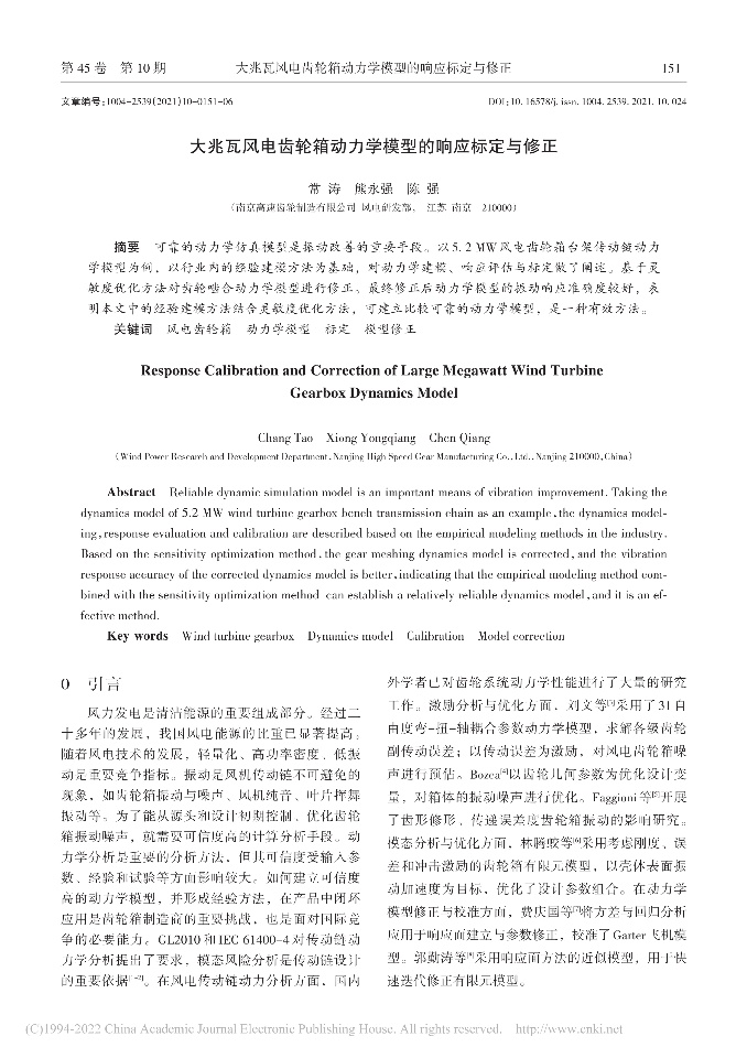 | 计及齿轮分度圆误差的风电齿轮箱振动特性分析 | 面向空间可展开结构的复合材料建模与结构优化技术 | 风电机组传动链动力响应特性分析与支撑系统影响研究 |