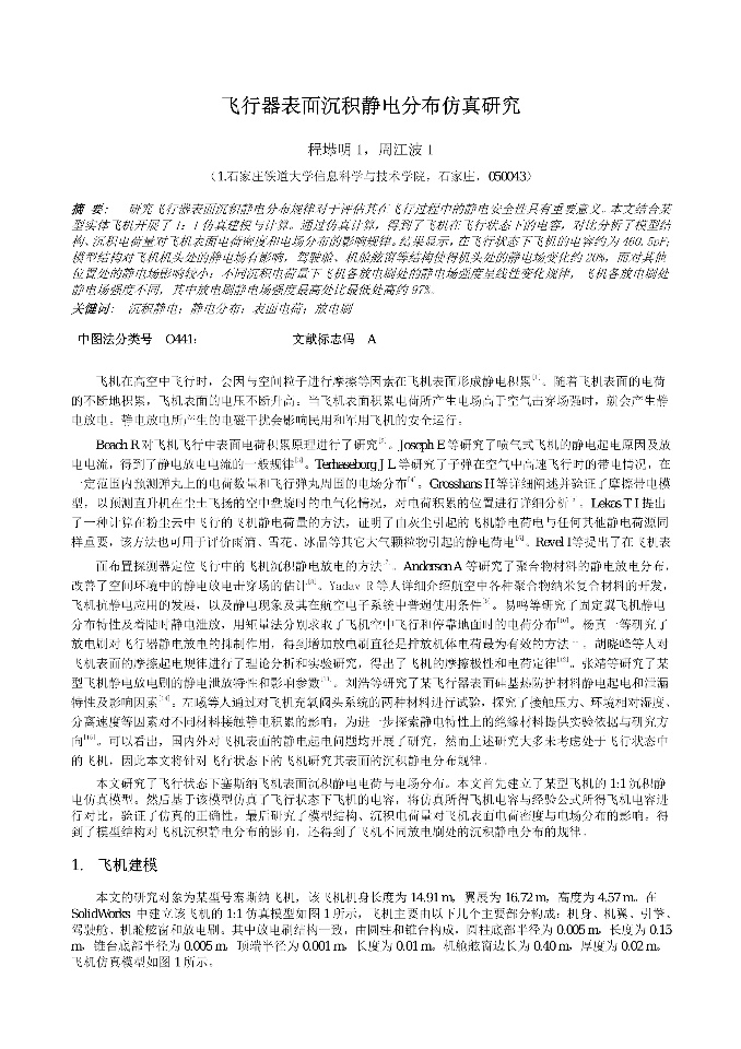 | 飞行器表面沉积静电分布仿真研究 |