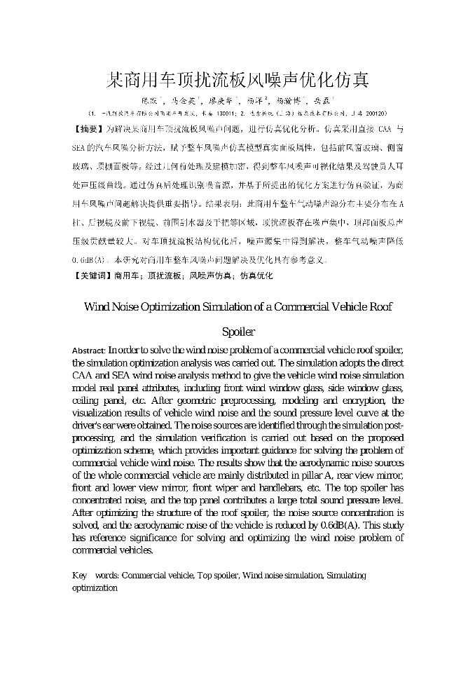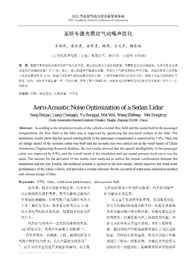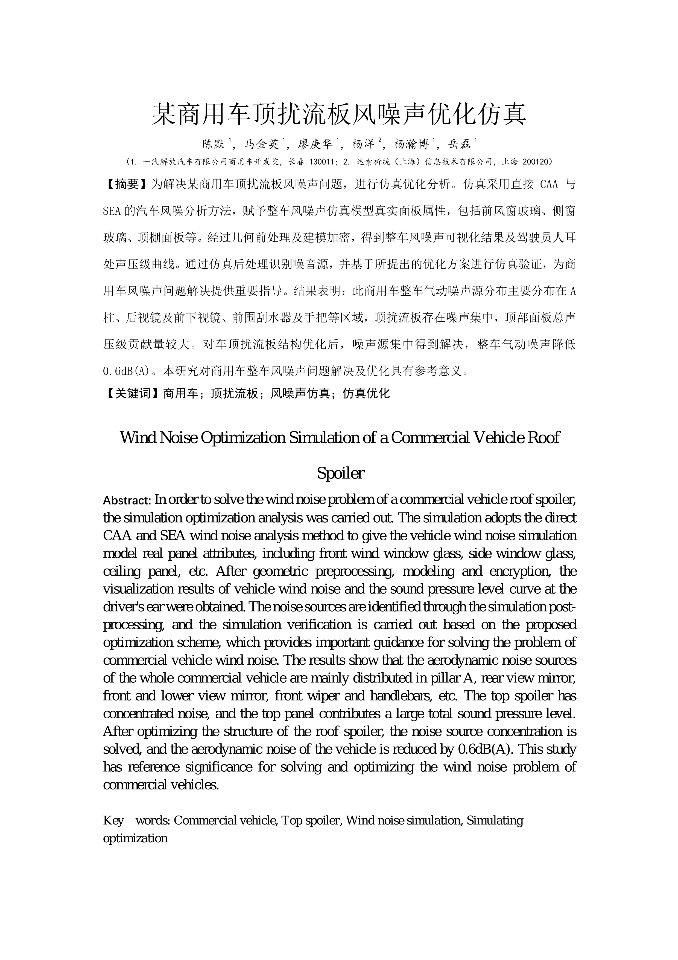 | 某商用车顶扰流板风噪声优化仿真(完整版) | 某轿车激光雷达气动噪声优化 | 汽车前风挡饰条对风噪的影响分析_杨丽 | 汽车天窗风振研究及优化_侯兆平 |