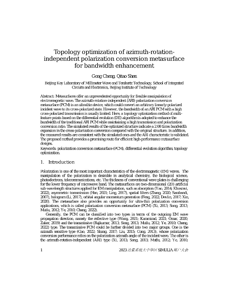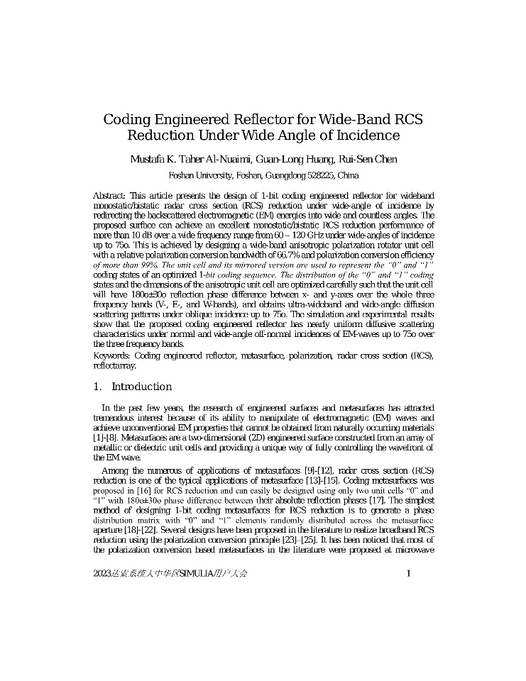 | Coding Engineered Reflector for Wide-Band RCS Reduction Under Wide Angle of Incidence-黄冠龙 | ITER TF线圈电磁特性分析for3DS | Topology optimization of azimuth-rotation-independent polarization conversion metasurface for bandwidth enhancement | 一种准各向同性的电小尺寸RFID标签天线 |