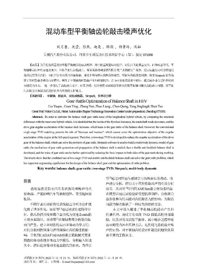 | 混动车型平衡轴齿轮敲击噪声优化 | 燃气喷射阀复位弹簧动态应力分析 | 睢忠强-城轨近接暗挖工程对高铁盾构隧道的变形影响研究 | 翅片异形管弯扭耦合变形力学分析 |