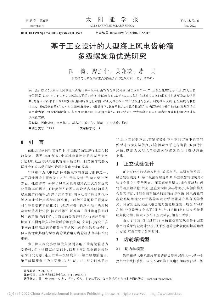 | 基于动力学特性优化的海上风电齿轮箱配齿研究 | 基于多学科优化的皮卡白车身轻量化设计 | 基于正交设计的大型海上风电齿轮箱多级螺旋角优选研究 | 基于齿廓修形和摩擦耦合的风电齿轮磨损动力学特性分析 |