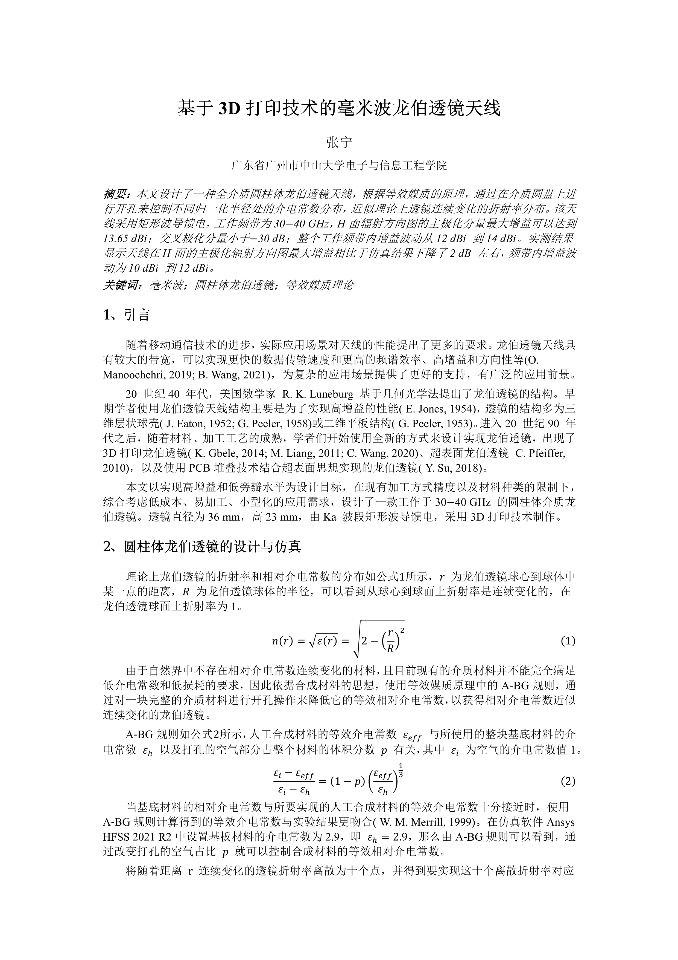 | 加载异形金属地板的微带缝隙贴片天线设计 | 加载扼流环的电磁透明基站天线仿真研究-牛威 | 加载正弦曲线的平面螺旋天线仿真研究 牛睿泽 | 基于3D打印技术的毫米波龙伯透镜天线 |