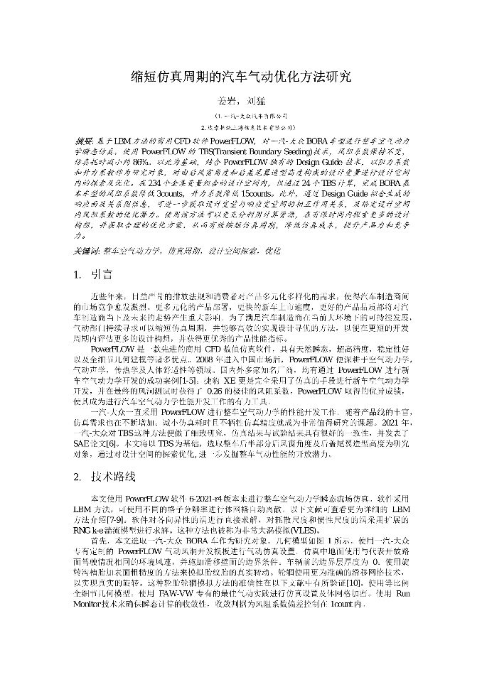 | 基于XFlow的城市建筑水文灾害仿真与工程应用 | 基于协同仿真的实验室通风系统数值模拟研究 | 基于缩短仿真周期的汽车气动优化方法研究-FAW_VW | 某乘用车天窗风振噪声参数化分析与优化_李小梅 |