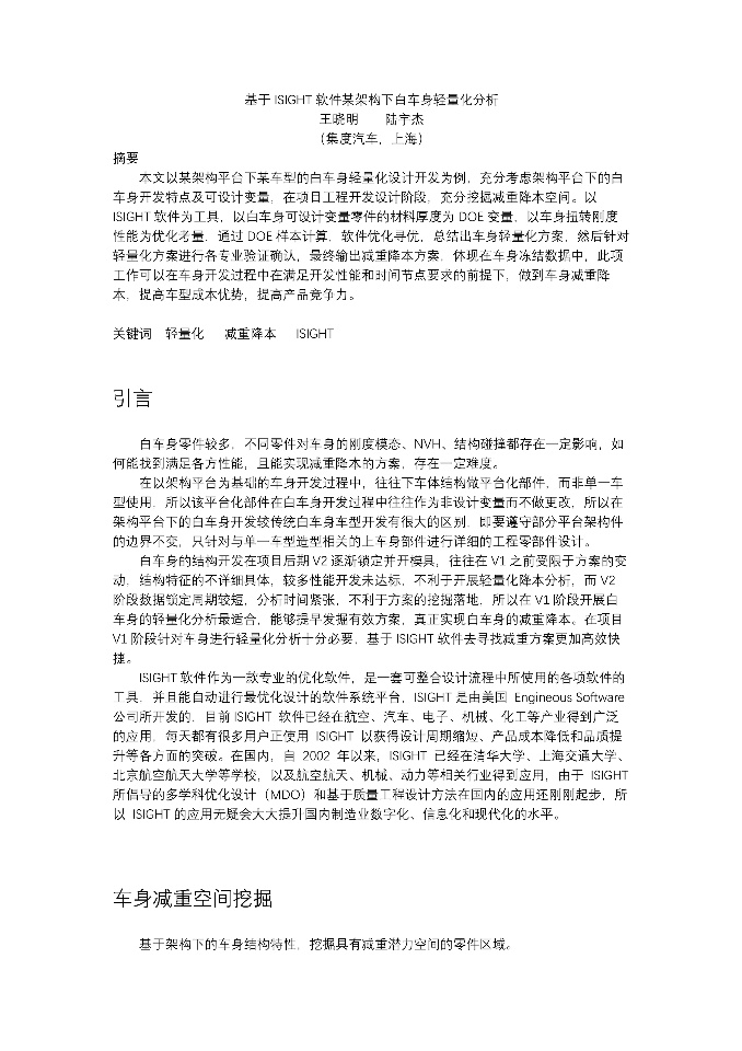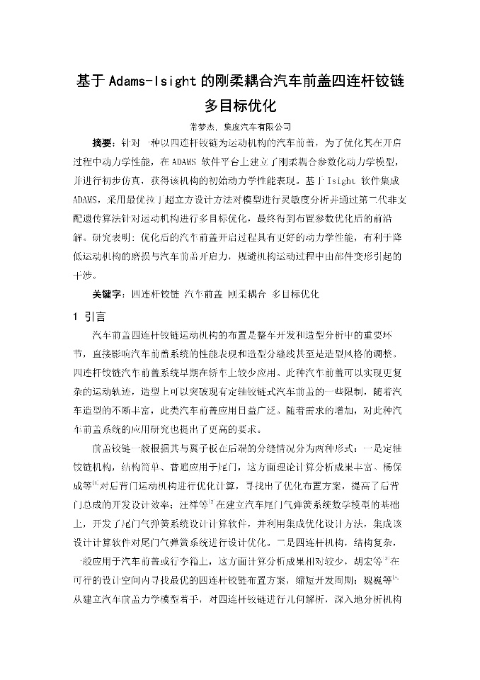 | 基于Abaqus的风力叶片屈曲数值分析与模拟 | 基于Adams-Isight的刚柔耦合汽车前盖四连杆铰链多目标优化 | 基于ANSYS-SIMPACK车-线-桥耦合系统动力学模型的多种实现方式及其对比 | 基于Isight软件某架构下白车身轻量化分析_集度汽车—王晓明_陆宇杰 |
