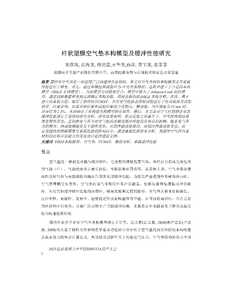 | 某商用车顶扰流板风噪声优化仿真(完整版) | 某电动车顶盖横梁胶粘失效问题分析及优化 | 柱状塑膜空气垫本构模型及缓冲性能研究 | 汽车前轴焊合件静动态分析 |