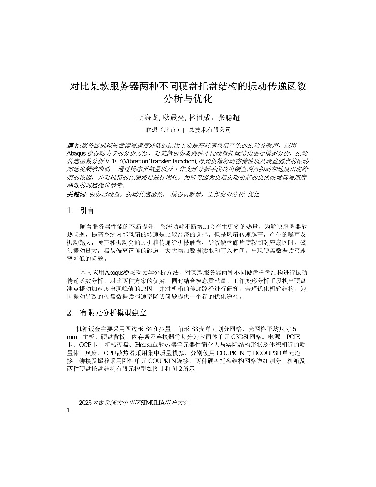 | 大兆瓦风电齿轮箱动力学模型的响应标定与修正 | 大口径钛焊管辊弯成型数值仿真与试验研究 | 对比某款服务器两种不同硬盘托盘结构的振动传递函数分析与优化 | 数字驱动的整车结构轻量化仿真优化系统设计与应用 |