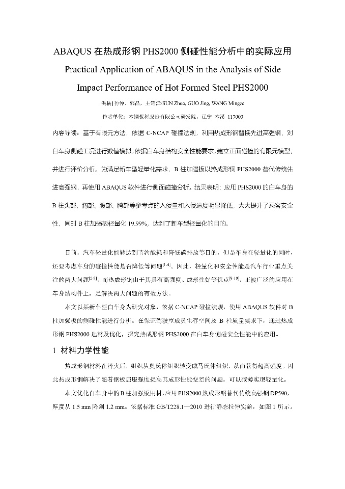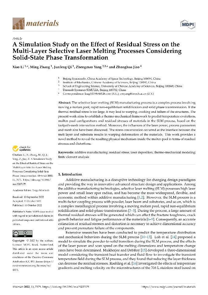 A Simulation Study on the Effect of Residual Stress on the Multi-Layer Selective Laser Melting Processes Considering Solid-State Phase Transformation | Abaqus在复合材料动力电池包仿真中的应用-张醒国-20230923 | ABAQUS在热成形钢PHS2000侧碰性能分析中的实际应用 | Karhunen-Loeve展开在ABAQUS中的实现 |