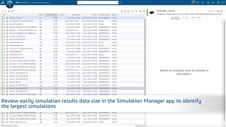 Easily review simulation data size and delete them efficiently to optimize data storage in 3DEXPERIENCE