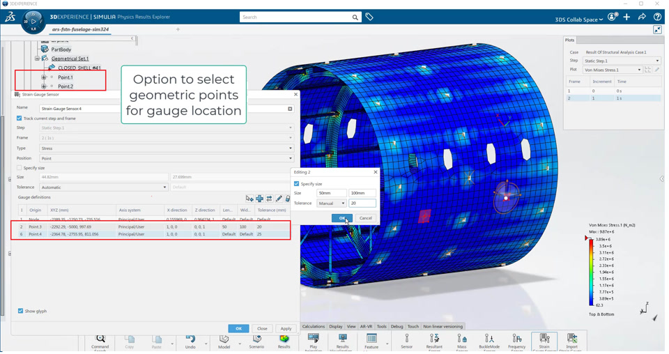 - Post-Processing - Virtual Strain Gauge creation tool to define and output simulation results consistent with standard physical test measurement methods, and help determine best strain gauge locations for test