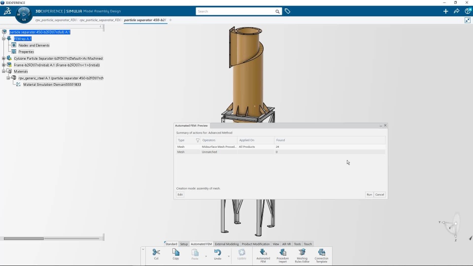 - Easily and reliably identify and correct disconnected mesh parts in an assembly based on the realized connections in the model definition to simulate complex assemblies more efficiently