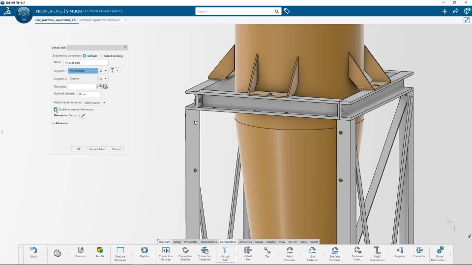 - Dedicated dialog box for virtual bolts results accelerating access to relevant outputs (force, moment, etc.)