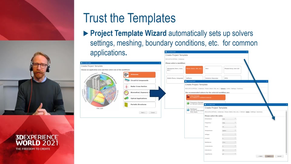 In this presentation, we will show you how easily SOLIDWORKS designers can share an antenna module and connector design with SIMULIA Electromagnetics Engineer through the 3DEXPERIENCE platform. The electromagnetics engineer using CST Studio Suite will be able to run an electromagnetics analysis, optimize the performance using parameters defined in SOLIDWORKS, and verify that the antenna and connector fulfills their electric design criteria.
