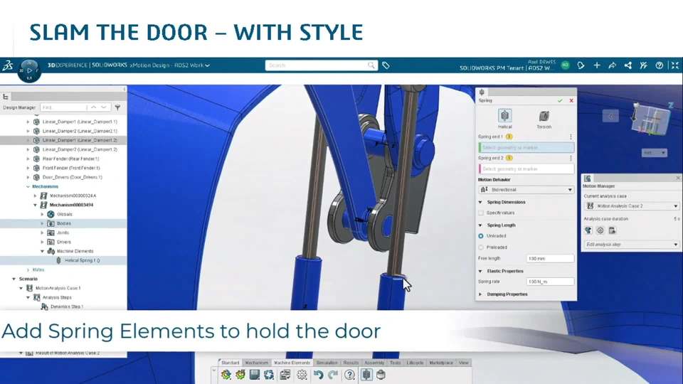 In today's world, everything is moving dynamically, so should your design on the 3DEXPERIENCE platform. 3D Motion Creator allows you to intuitively set up a motion model on top of your design in order to understand kinematic and dynamic behavior of the mechanical system at hand. Quickly assess kinematic feasibility of your system approach - create geometric traces from dynamic movement - assess interference of the moving mechanism with its environment - size motors and actuators - understand forces and torques acting in your system. The 3DEXPERIENCE xMotion Design app allows you to run various motion analysis and interpret results in an easy-to-use browser-based environment. Learn all about how easy it is to get started and build up complex motion simulations to help you in your task to design an optimal solution.