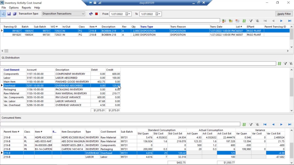 Companies are offered a real-time inventory transaction activity-based costing system that delivers financial auditability and integration between manufacturing engineers and cost accounting. Join our team to engage in a transaction-by-transaction workflow covering the following supply chain areas: purchasing to invoice, production to finished goods, and finished goods to customer. Consider the impacts to the GL and assess profitability of products by analyzing variances and capitalizing on the integration of manufacturing operations with the finance side of ERP.