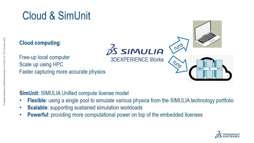 This video reviews running a Simulation locally and on cloud. It also covers SimUnit, SIMULIA Unified compute license model, and compares tokens with credits. The video is applicable to all SIMULIA solvers on the 3DEXPERIENCE platform.