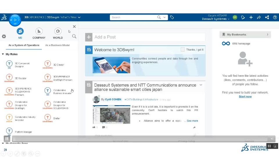 In this session you will learn how to install 3DEXPERIENCE applications with consideration to its prerequisites and options. You will understand the difference between apps that require installation and apps that run in a browser. It includes both SOLIDWORKS and DraftSight applications. The procedure starts by assigning roles to users. Then users click on an app to begin the installation. You will understand the customizations that are available during the installation. Lastly, we will introduce resources such as the Dassault Systèmes Knowledge Base and public communities where you can find additional help and information.