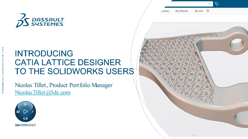 Lattice* design generates innovative structures to lighten and strengthen your product while leveraging additive manufacturing. Lattice structures start to be used in everyday products such as medical implants, shoes, bikes, and helmets as well as being investigated in large-scale products such as large drones, airframe structures, fuselage, and wind turbines. Heat exchanger is a perfect industrial example where the lattice structure can provide more surface area for the heat to exchange more efficiently. Come and learn how you and your team can benefit from the new Lattice Designer solution today. We will demonstrate how easy, associative and traceable the workflow is using the xDesign app for CAD modeling, the Lattice Design app for lattice generation and the simulation apps for structural, thermal and flow validations. (*) a lattice is a pattern or structure made of strips of wood or another material which cross over each other diagonally leaving holes in between.