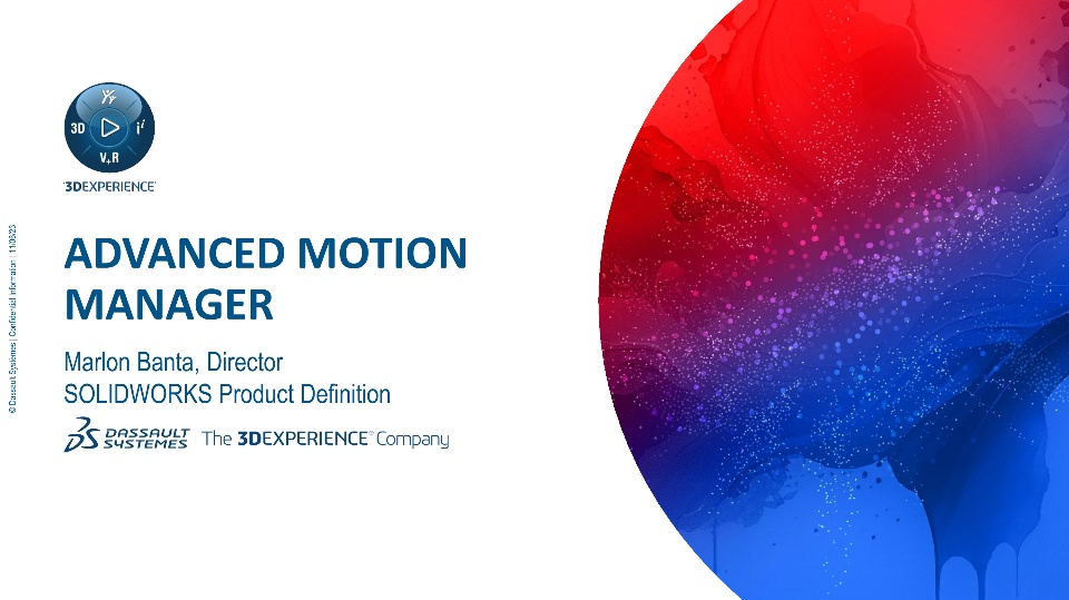 In this session you will learn the more advanced skills required to create SOLIDWORKS animations. This session will complement Introduction to the SOLIDWORKS MotionManager—Hands-on that will be presented at 3DEXPERIENCE World 2024. In this session you will learn advanced techniques to create animations in SOLIDWORKS using the MotionManager. The first 1/3 of the presentation will be dedicated to learning to use cameras in SOLIDWORKS and how to create dynamic animations with cameras in the MotionManager. Next we will review techniques MotionManager animation using mates. Learning how to use motors will be tied in with two examples of how to change the shape of parts in an animation using assembly cuts and assembly equations. This presentation requires a working knowledge of the MotionManager and SOLIDWORKS Assemblies. To prepare for this presentation you can take a self-paced tutorial on the MotionManager by downloading the materials from: www.solidworks.com/intro_motion_manager.