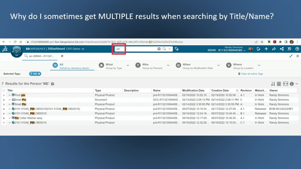 Whether you are a new or experienced user of the 3DEXPERIENCE platform you may run into questions about your data and how to find it. This session will benefit CAD users and their web-based collaborators by showcasing the functionality of the 3DSearch tool.
