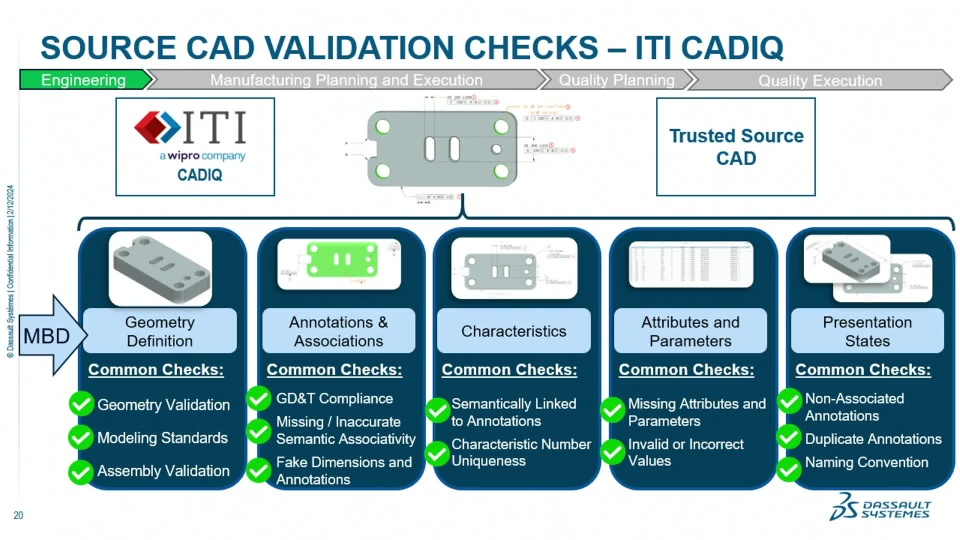 In our experience, there are two types of predominate model-based workflows: Workflow A who equates model-based definition (MBD) to an annotated model and a 3D PDF; and Workflow B who intentionally leverages annotation practices with the intention of increasing its potential for machine readability downstream of engineering and product definition. Within this presentation we are going to focus on the importance of crafting a comprehensive MBE strategy that focuses on annotation practices that are machine and human readable. Showing industry-standard compliant MBD as the foundational piece. We will showcase why Workflow A’s approach is a great first step, and why Workflow B’s approach is more valuable in the long-term. Additionally, we will talk about the essential strategic actions that must be at the top of your to-do list and how to measure the success of those actions as you embark on your journey to MBE implementation.