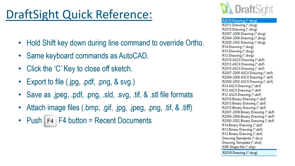 Understand the similar commands in DraftSight related to 2D AutoCAD. The introduction of all the identical AutoCAD keyboard shortcuts in DraftSight and keeping current with the latest version of 2D CAD (.dwg & .dxf) files. Witness the commonalities between DraftSight and SOLIDWORKS type of functionalities. Display how you can use current AutoCAD settings, profiles, autoLISP, and .dcl file menus. As a bonus, similarities will be shown for SOLIDWORKS Users. Attendees will leave with an understanding of how DraftSight can be your new 2D CAD software and which DraftSight package is best for you and your organization.