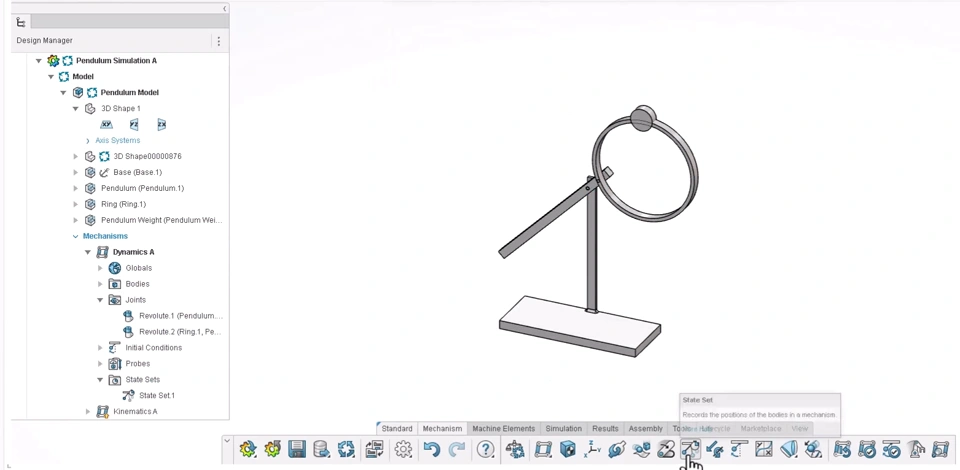 Description: Store the current model state as State Set through an action bar command. Store multiples states and switch in between them in Kinematics Player.