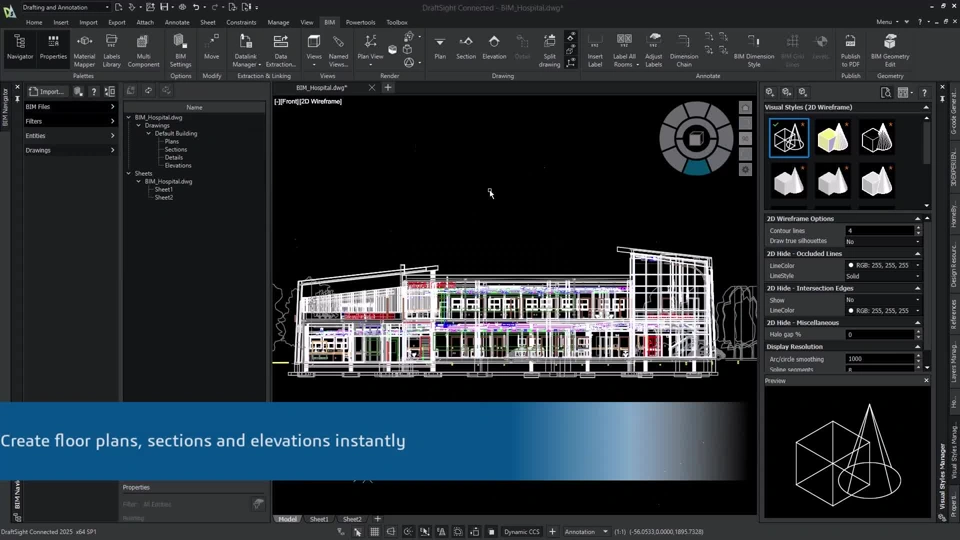 Description: The BIM Module seamlessly integrates BIM workflows into DWG-based design processes enabling you to generate 2D drawings by importing and leveraging data from 3D BIM Model files. This integration helps streamline project collaboration, enhance design accuracy, and improve overall project efficiency.