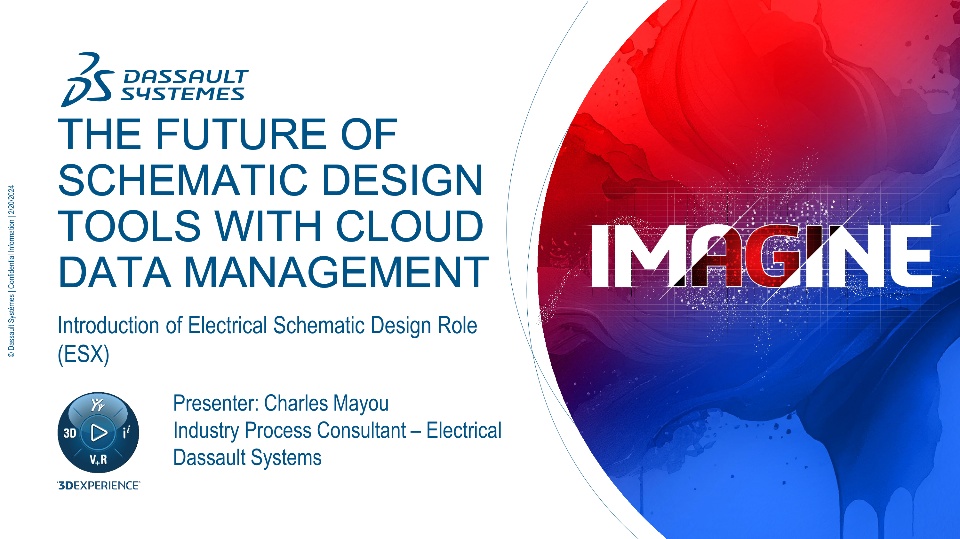 Come explore the future of schematic design tools. In this session we will take a look at our new Electrical Schematic Designer role for 3DEXPERIENCE platform. We will partake in the journey of detailing out a small electrical schematic, including addition documentation requirements, 2D cabinet layouts and automatic report generation. Lastly we will explore managing the Electrical Schematic Project with in the 3DEXPERIENCE Collaborative Spaces. In addition we can store and manage the library in 3DEXPERIENCE providing a single repository for all of your standard design elements (Symbols, Manufactures Parts and Project Templates).