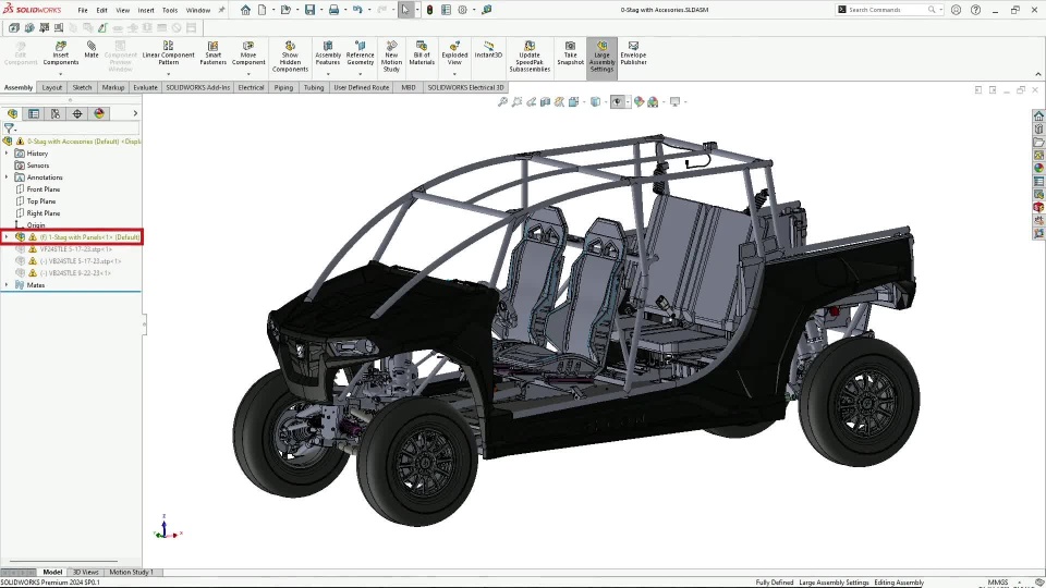 Volcon ePowerSports designs and builds the world’s most exciting outdoor vehicles including the new 2023 Stag, an all-electric easy to operate electric 4 wheeled off-road vehicle. Last year we showed the harness on the Grunt EV Motorbike with a smaller assembly. This year we are tackling a larger harness on the 2023 Stag which has over 43 connectors along with a fuse block with over 72 connection points. We will cover 2D schematics, documenting fuse blocks with wire jumpers that also have connections to the harness. Once the 2D schematic is complete, we'll then move to the 3D model and show some well-learned techniques for placing connectors, and how we handled ultrasonic splices. Next, we'll discuss Routing options, and then flatten the route. Performance enhancements in SOLIDWORKS 2024 makes working with the harness very manageable. We’ll then finish the flattened harness with a production ready drawing and discuss best practice documentation techniques.