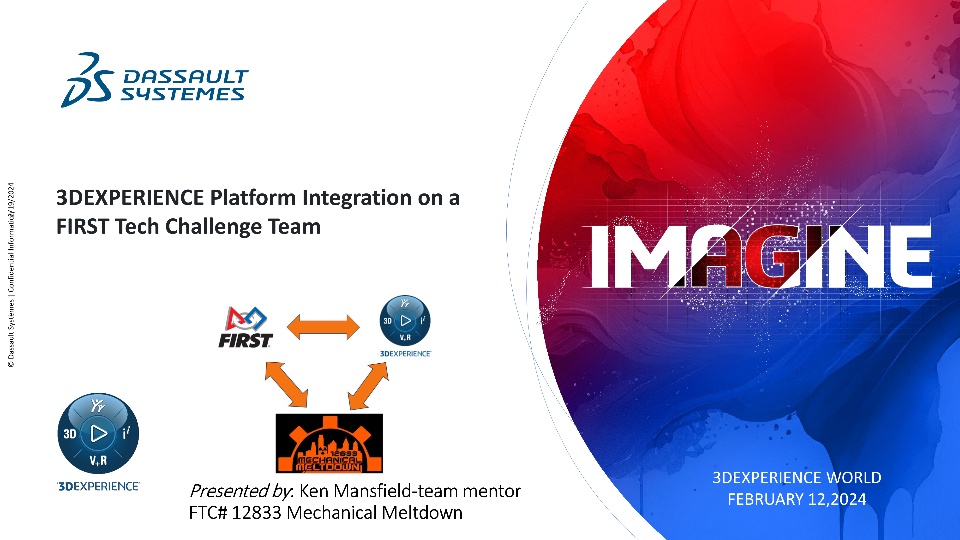 12833 Mechanical Meltdown is a First Tech Challenge Team (FTC) located in Watkins Glen, NY. This presentation shows how the team used SOLIDWORKS 3DEXPERIENCE as a complete technology platform for design collaboration on their competition robot. The 3DEXPERIENCE platform was used for concept brainstorming, CAD modeling, prototyping, documentation and building. This project gave the students experience using professional grade software tools. It also helped students understand broad concepts in PLM, design collaboration and cloud apps. See how 12833 Mechanical Meltdown integrated the 3DEXPERIENCE platform and be inspired to do the same for your students!