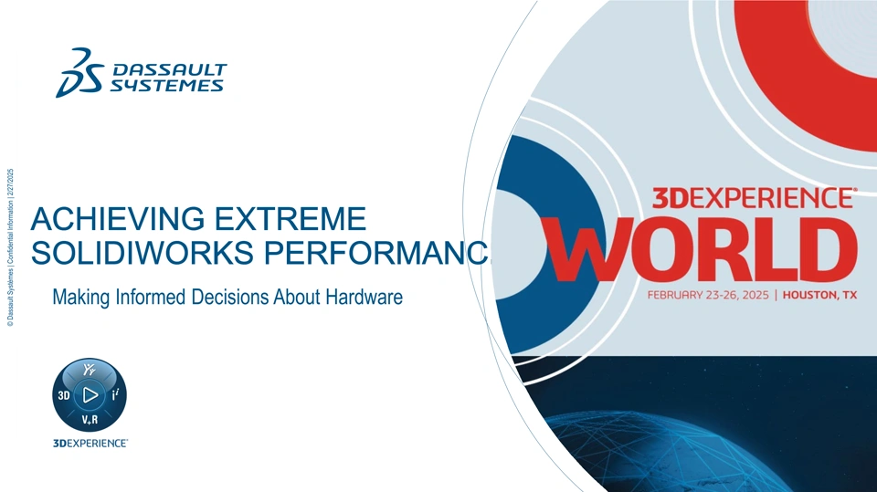 This presentation is an annual update on benchmarking studies (over 275,000 runs to date) which breaks down major areas of hardware to help understand the impact on SOLIDWORKS performance. Through strong partnerships with hardware suppliers such as Intel, AMD, Nvidia, Dell, Lenovo, & Boxx, we have been able to test trending hardware including, but not limited to, Intel pro processors, AMD Threadripper processors, Nvidia Ampere & ADA graphics cards, AMD Radeon Pro graphics cards, and various workstation set-ups. GoEngineer provides valuable insight that can help SOLIDWORKS users make informed decisions about hardware. Tracking these trends year-over-year is especially useful for understanding how new systems impact performance. Are there specific hardware performance metrics you’re interested in learning about? Are you considering an upgrade and want to know which components give you the best performance boost? Don’t buy another system until you see the latest data in this presentation.