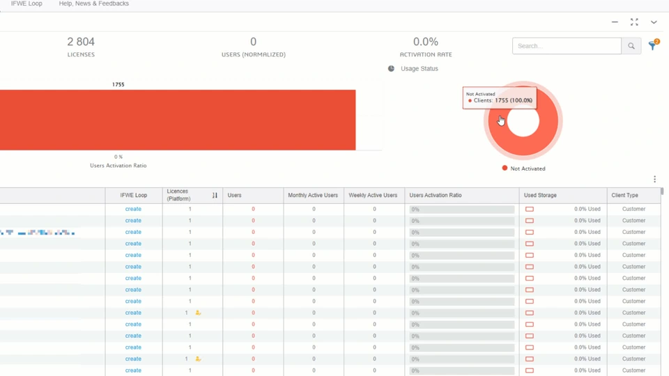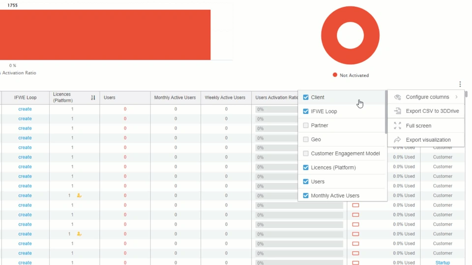 You will be able to only show the list of clients who haven't activated in clicking on the 0% column of your Cloud Usage graph.