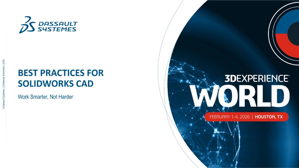 Work smarter, not harder with these SOLIDWORKS best practices. Do your drawings take a long time to save? Do your files ever act weird or fail to open (file corruption)? Do you use color to make your detailing stand out on drawings? Do your sheet metal drawings ever misbehave? Do you restart your computer instead of just shutting it down every night, or putting it to sleep? Do you work with imported geometry? We'll address these issues and more, using best practices learned over eight years of SOLIDWORKS tech support and twelve years of using SOLIDWORKS in the work force.