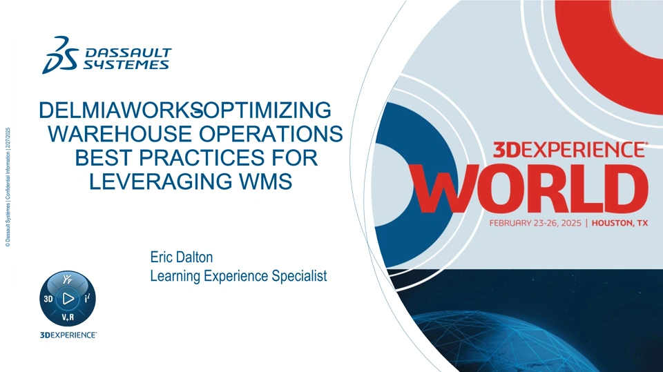 In this session, you will discover strategies for enhancing your warehouse operations through the use of the DELMIAWorks Warehouse Management System (WMS). Gain insights into best practices aimed at boosting efficiency, accuracy, and productivity in essential areas like inventory management, order fulfillment, and resource allocation. Learn how to streamline processes, reduce errors, and improve real-time visibility into warehouse activities. By implementing these practices, you’ll be well-prepared to meet increasing demands, lower operational costs, and elevate overall warehouse performance. This session is ideal for those wanting to maximize their WMS utilization.