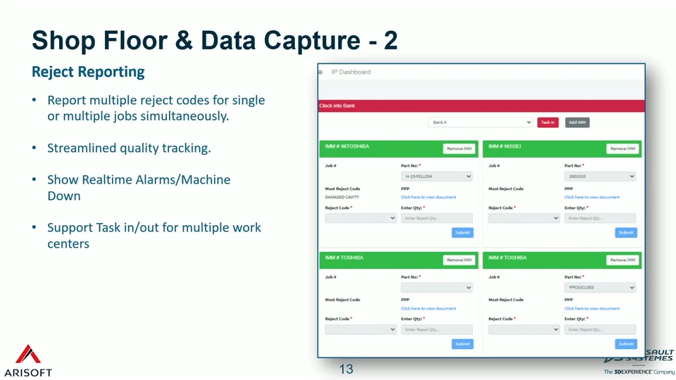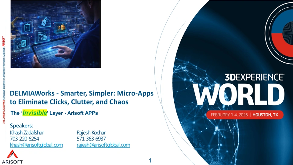 Today, manufacturers expect speed, simplicity, and smart Workflows. Users want intuitive tools that align with how they actually work, without altering DELMIAWorks ERP. Fewer clicks and task-focused tools are expected on the shop floor, and in SCM, Sales, and Finance. IT wants to avoid custom code maintenance while still enabling tailored, efficient workflows. Users often resort to repetitive entry, manual spreadsheet management, and manual validation. The Arisoft App Suite is built for users with a suite of micro-apps that eliminate friction in DELMIAWorks usage, especially: corner processes, warehouse and inventory, guided kitting, custom pick tickets, line-level component validation, inventory price updates, physical inventory upload for Finance and Procurement, standard cost uploader, mass PO updates, AKA price tools master data utilities, item master and inspection uploads, capture extended attributes for Sales and Shipping, eCommerce integration, fast SO upload, and label verification.