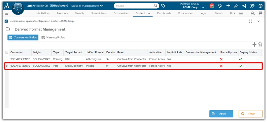 All new 3DEXPERIENCE tenants are pre-configured with a conversion rule for automatically generating ExactGeometry when saving a part and assembly from SOLIDWORKS to the 3DEXPERIENCE platform.