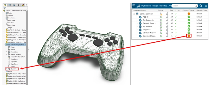 For parts with complex geometry the process of generating the ExactGeometry representation can take minutes. To help track the conversion status a column titled “Convert Status” can be displayed in the SOLIDWORKS MySession task pane.