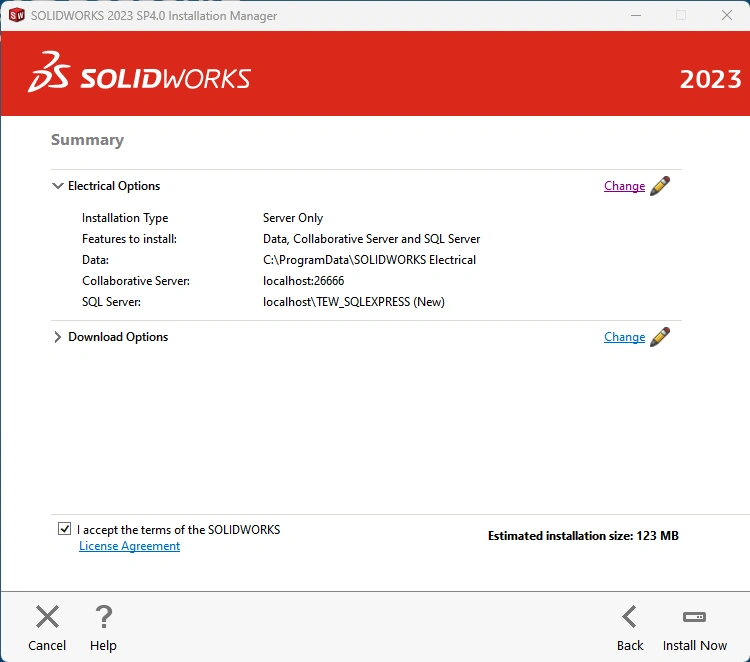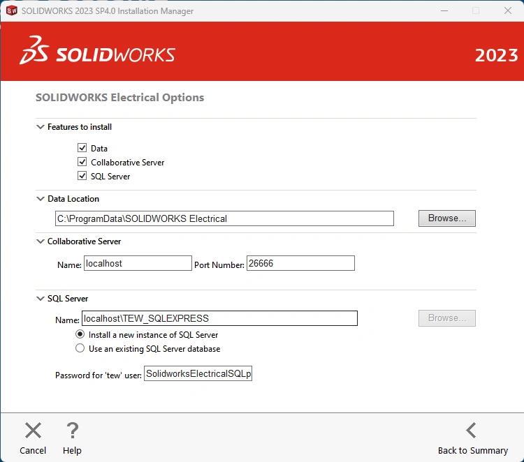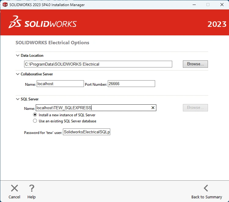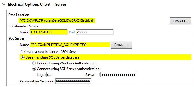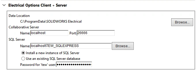 It is also a recommendation to create SOLIDWORKS Electrical databases on a separate and dedicated SQL instance.