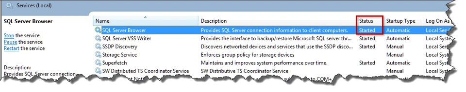 Ensure that both the SQL Server Browser and SQL Server services are running. To confirm this, open the Windows Services app.