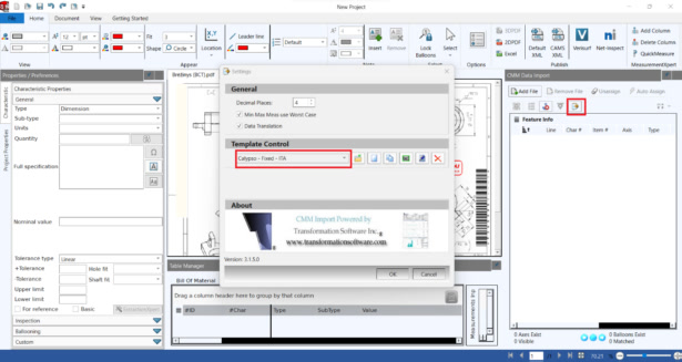 To do so please go to the 'CMM Data Import' task pane, click 'Settings'. In the 'Settings' dialog box, to view a list of existing template names, under 'Template Control', click the drop-down arrow. Here you will find template list for more than 60 CMM machines. If you see the name of your CMM machine that please select.